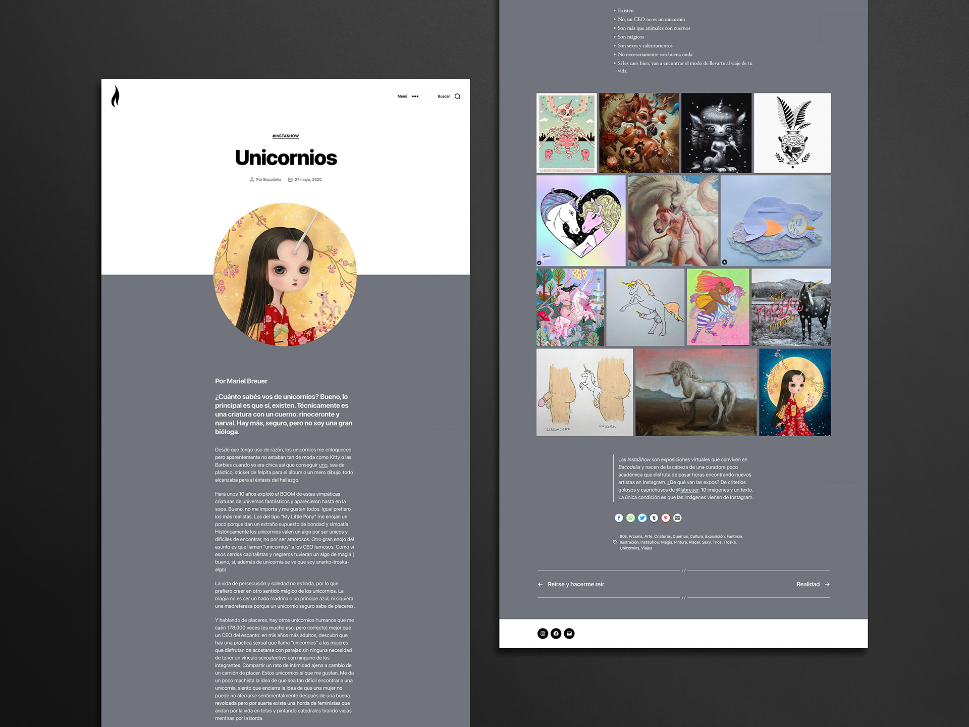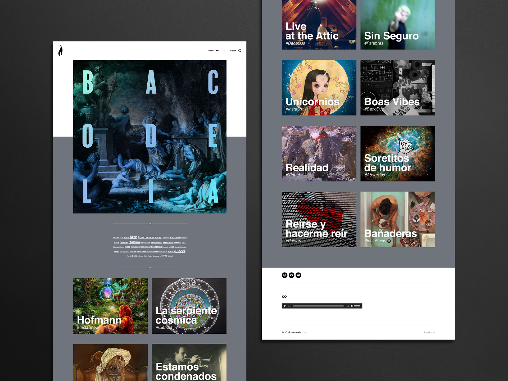 Formo parte de un grupo de artistas argentinos llamado Baco, en honor al Dios de la fertilidad y el vino. Luego de varios años de actividades artísticas, se acuerda la creación del sitio Bacodelia.com, y también de la cuenta Instagram.com/bacodelia, para compartir aquello que nos encanta. Porque Baco es arte, cultura, y sobre todo, placer.